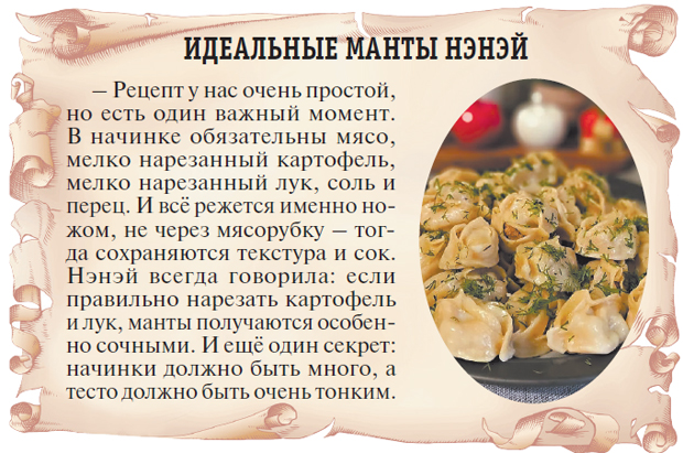 – Манты от вашей нэнэй – это легенда. Вы всегда подчёркиваете, что их нужно готовить только руками. Почему?