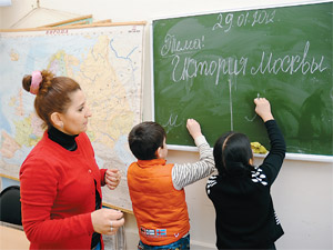 Многие приезжие из Узбекистана, Таджикистана, Киргизии, составляющие наиболее многочисленные группы, - это малообеспеченные семьи. Они приехали из небольших городов или сёл, как правило, с невысоким культурным и образовательным уровнем. Поэтому и они сами, и их дети зачастую очень плохо знают русский язык и тем более нашу историю и культуру. Уже созданы специальные методики преподавания русского как иностранного (учебный центр русского языка МГУ), опыт преподавания русского для детей из семей мигрантов накоплен в целом ряде столичных школ. Но пока это всего лишь капля в море.