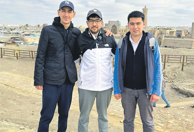 Амаль Исамухамедов (в центре) и его команда узбекских изобретателей — Шахзод Нарзуллаев (слева) и Диас Абдурахманов. Фото: личный архив