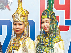 Тувинские артистки показали гостям красоту народного костюма: расшитых платьев и головных уборов борт.