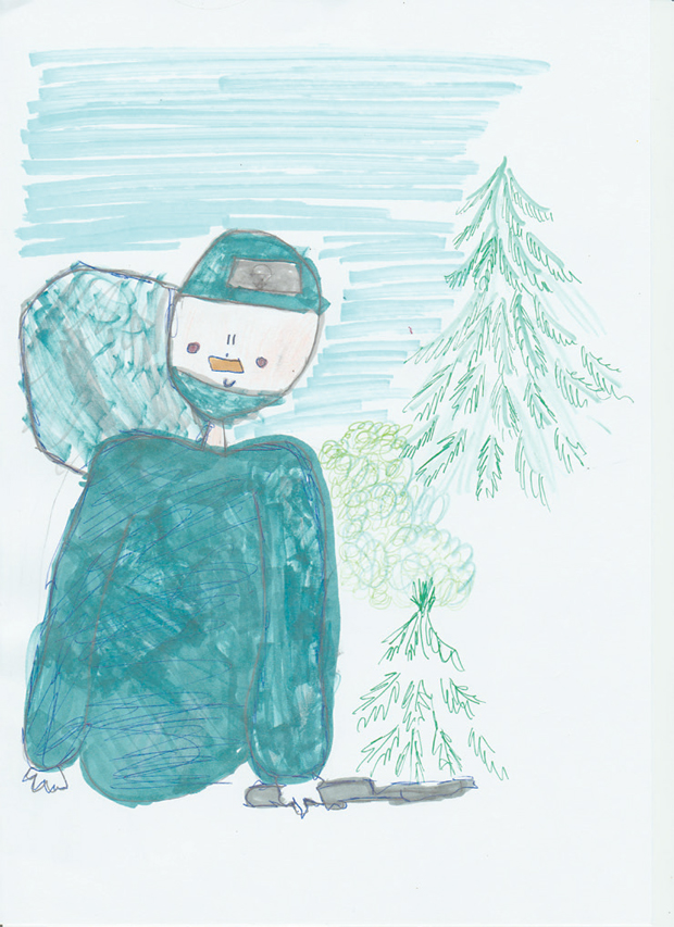 Папа-удмурт с позывным «Абагур» уже воспитал сыновей, у него 7 внуков и внучек. До пенсии оставалось немного. Но в 2024-м принял решение уйти на СВО. Рисунок подготовила внучка, 9-летняя Вика, она очень ждёт дедушку.