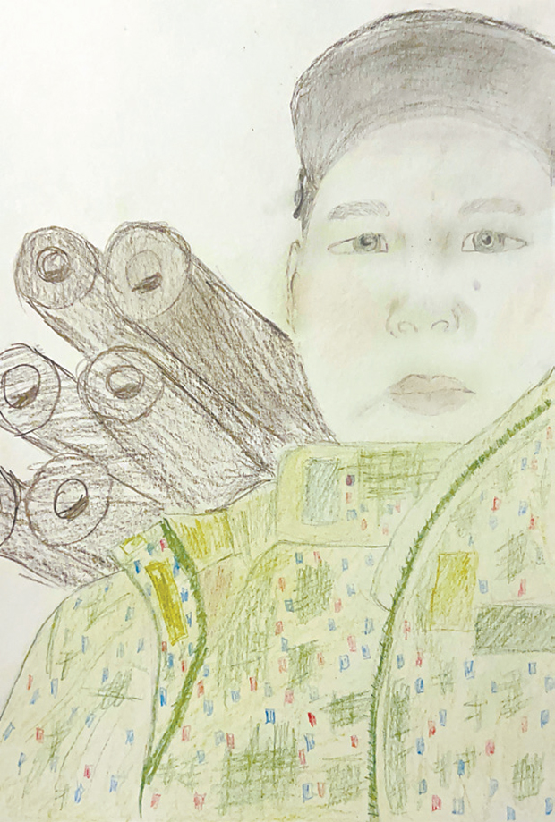 Папу-калмыка, обороняющего Москву от атак БПЛА, а также воздушных нападений противника и носящего позывной «Маэстро», нарисовала 11-летняя Елизавета. Всего в семье 3 сына и дочь, сейчас ждут пятого малыша.