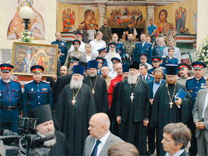 «Я очень рад, - признался митрополит Ювеналий, - что на богослужение прибыло много представителей казачества, духовенство и паломники. Мы счастливы, что, как в древние времена, Царица небесная объединяет защитников Отечества, внушая им мужество, мудрость и силу для служения своему народу и возлюбленному Отечеству».