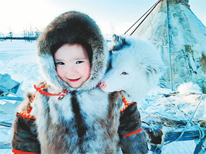 Первое место заняла фотография «Северяночка» жительницы Ямала Екатерины Яптик. «На фото моя 5-летняя дочка Лиза в зимней ненецкой одежде – малице, – рассказывает победительница. – Этот снимок я сделала в тундре, в Надымском районе Ямало-Ненецкого округа, весной. Погода была минус 15–20 градусов – по тундровым меркам это тепло. В Надымском районе у нас живут родственники-кочевники. На заднем фоне – чум, а белый игривый щенок – ненецкая лайка по имени Хакця. Собака села рядышком с дочкой, и я поймала этот момент.