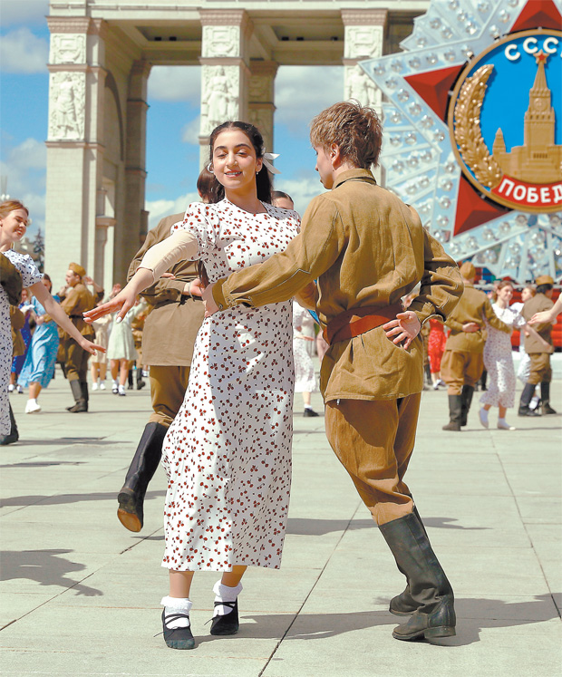 Действо началось с вальса «На сопках Маньчжурии». Под музыку пары выходят на площадь и радуются Победе. Обнимаются, смеются, парни кружат девчонок на руках. Атмосфера такая, что кажется, будто ты перенёсся в победный май 1945 года…