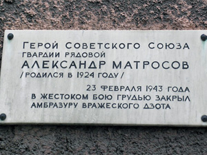 Мемориальная доска на улице А. Матросова в Санкт-Петербурге.