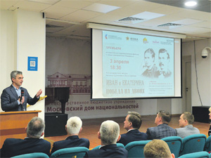 На показе художественно-документального фильма «Иван и Екатерина. Победа на двоих» в Московском доме национальностей. Слово держит его директор Сергей Ануфриенко.