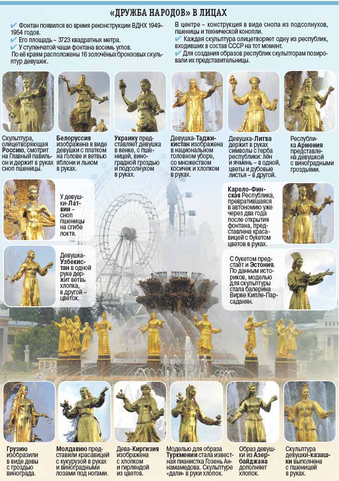 Знаете ли вы, что образ Грузинской ССР в составе фонтана «Дружба народов» ваяли с первой красавицы Тбилиси – жены поэта Михаила Светлова Родам Амирэджиби, княжны?