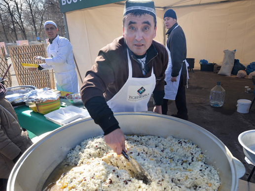 Московский Навруз к земледелию почти не имеет отношения, зато празднуют его в столице широко и с размахом. Ведь главный смысл праздника — объединение людей, их общая радость. Поэтому на ВДНХ, где в этом году проходил московский Навруз, пришло более 40 тысяч гостей. Однако всем хватило музыки и танцев, сувениров и подарков, баурсаков и наурыз-коже, радости и хорошего настроения. В программе праздника — чудесный концерт, соревнования по национальной борьбе, модный показ этнических костюмов. Огромное внимание привлёк фестиваль плова, который проходил снаружи, на прилегающей площадке — здесь лучшие мастера Узбекистана, Казахстана, Туркменистана и других стран боролись за победу, а гости пробовали плов и только нахваливали.