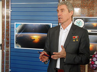 Без преувеличения можно сказать, что собравшиеся слушали легендарного космонавта, открыв рты от изумления. Да и кто из землян может догадываться, как непросто работать с камерой на орбите. Все снимки сделаны через толстый иллюминатор. Космический корабль при этом несётся со скоростью 8 км в секунду, и нужно отлично знать географию, чтобы поймать в прицел объектива тот или иной объект. При этом сам космонавт находится в невесомости и вращается вместе с камерой, тут, пока не приноровишься, вообще ничего не получится! Зато когда получается — результаты просто потрясающие. Например, где ещё на одном снимке увидишь сразу два города — Москву и Питер, или целый «сапог» Италии, или Камчатку, или дно пролетающего мимо шаттла. «А что ещё видно из космоса?» — не унимались слушатели.
