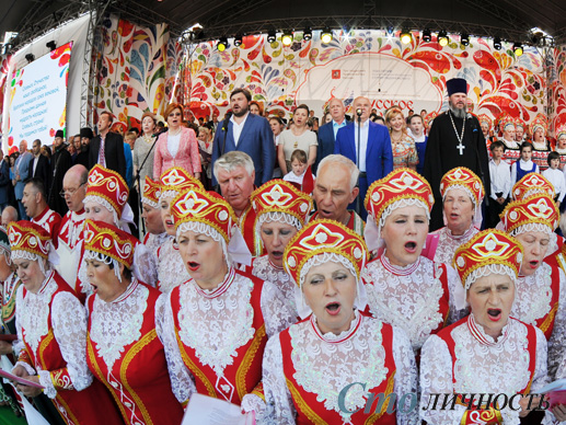 «Русское поле» уже третий год радует гостей фестиваля высоким уровнем исполнительского мастерства фольклорных коллективов. В этот раз участники особенно старались — ведь председателем жюри был главный военный дирижер России, генерал-лейтенант Валерий Халилов, а художественным руководителем — выдающийся российский пианист Петр Дмитриев. Высокую исполнительскую планку задал руководитель фестивального оркестра, известный мультиинструменталист и дирижер Юрий Медяник. Кульминацией фестиваля стало выступление под руководством Валерия Халилова самого большого хора русской песни, к которому мог присоединиться любой гость фестиваля. В субботний вечер на фестивальной сцене собрались 2 800 человек, исполнявших вместе Гимн России, знаменитую «Катюшу» и другие русские народные песни, которые в ходе голосования на сайте фестиваля www.рполе.рф посетители отдали предпочтение. Это достижение официально зафиксировали представители Книги рекордов России.