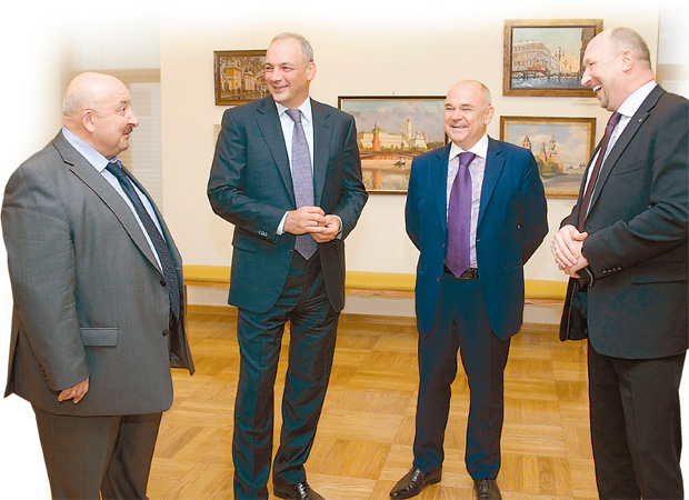 Председатель Комитета ГД РФ по делам национальностей Г. К. Сафаралиев, замруководителя Администрации Президента РФ М. М. Магомедов, руководитель Департамента межрегионального сотрудничества, национальной политики и связей с религиозными организациями Москвы Ю. В. Артюх и директор МДН Н. П. Комаров. Фото: архив МДН