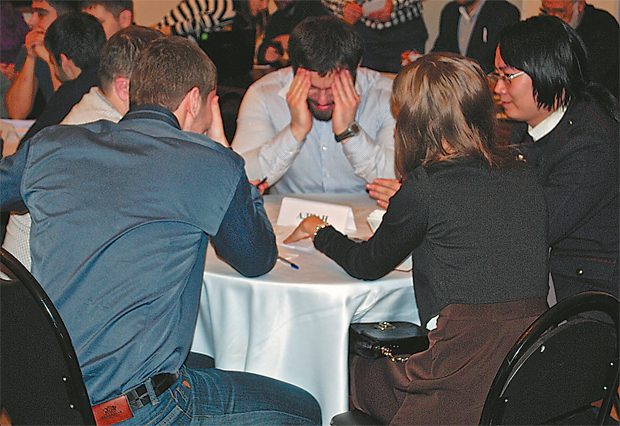 Всю игру уверенно лидировала команда «Сборная АМО», и с большим отрывом она заняла первое место. На втором месте - «Мендвт» (что по-калмыцки означает «Привет»), на третьем - студенты из РУДН («Дети Каподистрии»). Надо сказать, что «помериться умом» в большинстве своём собрались отнюдь не новички. Многие ребята уже давно и успешно играют в интеллектуальные игры. Александра Чернова, капитана команды «Дети Каподистрии», удивил уровень подготовки других команд и сама игра: «Нам об этом турнире рассказал президент Ассоциации студентов Ингушетии Амир Орцханов. Мы играем в «Что? Где? Когда?» довольно часто и в своей гордыне думали, что придём и сразу выиграем. Но всё оказалось не так-то просто! Поздравляем всех, кто вышел в финал. Ребята - молодцы».