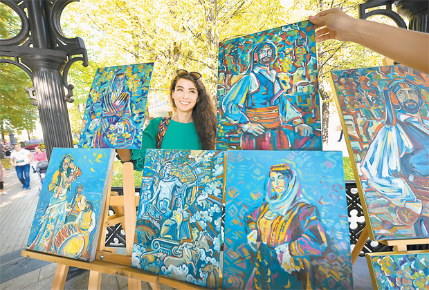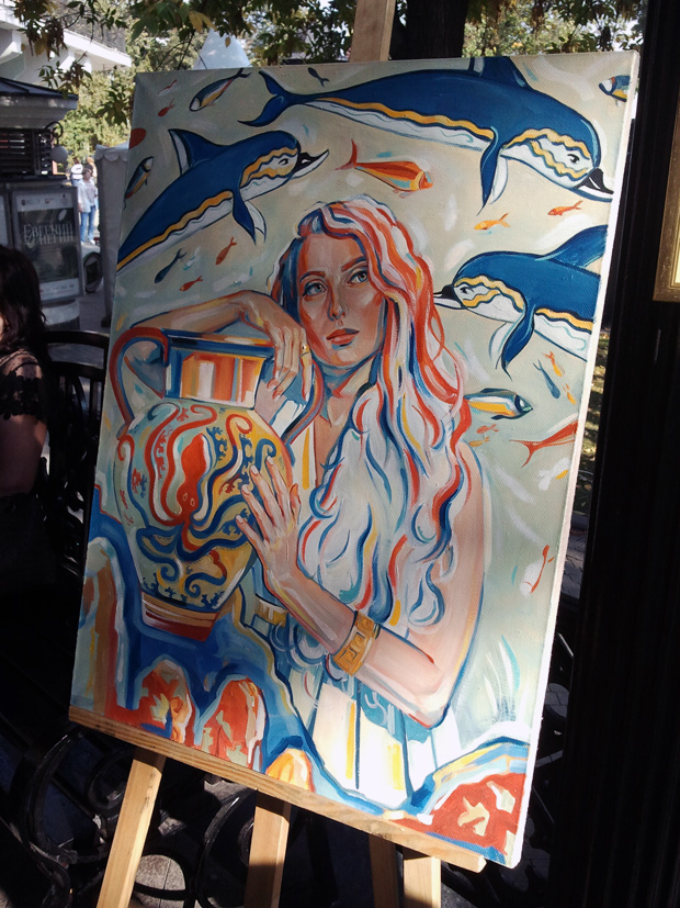 Чтобы взять интервью у молодой художницы Нины Иоанниди, чьи работы украсили беседку «Эрмитажа», искали переводчика. Ведь никто не мог подумать, что для девушки с такой фамилией и внешностью греческой богини родной язык - русский. Она жительница Краснодара, была студенткой художественно-графического факультета Кубанского государственного университета, сейчас учится в магистратуре.