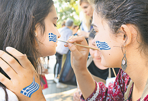 Некоторые посетители фестиваля уносили с собой на память по... греческому флагу. Фото: Эдуард Кудрявицкий