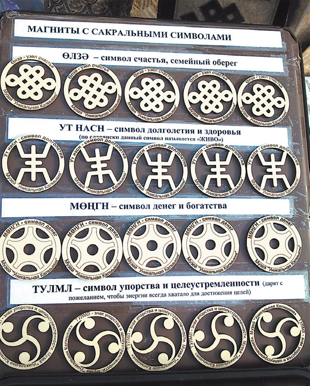 В старину калмыков называли ойратами. Басан Захаров, автор книг об ойратах и их духовных основах, предлагает нам магниты с сакральными символами – они добавляют целеустремлённости, дают сил для долгой жизни, приносят богатство. Разве подействуют они на славянина? «Большинство наших древних символов идентичны славянским, – отвечает он. – К примеру, символ «узел счастья» использовался как орнамент в русских национальных одеждах. В них мощная энергия, неважно, какой национальности человек, какой веры. Они древние, дорелигиозные». Философия ойратов строится на том, что жизнь – это счастье. «Мы уверены, когда-то такое мировоззрение было у всех народов. Оно очень естественное, поэтому идеально подходит людям любой культуры, – говорит Басан. – У мужского и женского начала есть особенности. Если это понимать, тогда в воспитании детей будет меньше проблем, особенно в переходном возрасте. Нужно, чтобы человек развивал себя, был в гармонии с собой, с другими людьми, с природой, с Богом, с непознаваемой частью Вселенной. Начинать так жить сложно, но потом всё довольно просто».