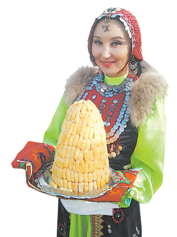 Арт-директору галереи художников и мастеров народного и декоративно-прикладного искусства из калмыцкой Элисты Людмиле Мошулдаевой на московском празднике чаёвничать некогда. Посетители хотят разобраться, что разложено у неё на столах. «Маля – кнут со свинцом, служивший оружием, с ним ходили на волка. Сейчас его дарят на свадьбу как символ мужской власти. У меня дома и у моей мамы он висит на видном месте, – протягивает Людмила экспонат мини-выставки. – Также мы привезли куколку счастья, в её наряде ленты пяти буддийских основных цветов. Когда девушка у нас выходит замуж, она привозит в дом мужа такую куклу и хранит на алтаре для защиты семейного очага. У каждого рода свои по цвету ленты».