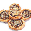 2. Перекладываем заготовки на противень, выстеленный пергаментом, и начиняем фаршем (по 1 ст. ложке). Взбиваем яйцо с молоком, заливаем полученной смесью перепечи – по 2 ст. ложки в каждый.