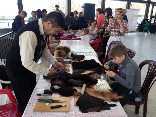 Представитель марийского народа Валерий Шимаев показывал, как работать с мехом и кожей, уверяя, что из старых дублёнок и шуб можно сшить много полезных вещей.
