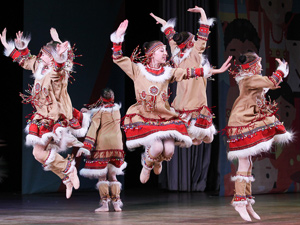 Концертная программа в исполнении взрослых и детских коллективов помогла ведущим мероприятия Ване и Лизе Познавайкиным проиллюстрировать танцами и вокальными номерами повествование о самобытном укладе жизни народов нашей страны. В рубрике «Национальный путеводитель» юным москвичам нарисовали портреты чукчей, коряков и эскимосов.
