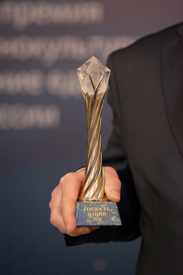 – Статуэтка для лауреатов выполнена из натуральных материалов. Основание из лазурита символизирует нашу матушку-Землю и самородков, которых она рождает. Вертикальная средняя часть состоит из 7 дорожек, напоминающих о 7 номинациях премии. Венчает статуэтку кристалл из уральского горного хрусталя, который говорит о том, что каждый наш лауреат – это бриллиант!