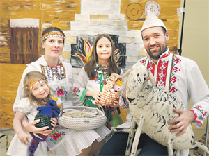 Алексей Рыбаков, его жена Светлана и дочери с традиционными марийскими куклами в руках.