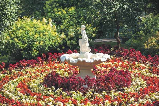 Начальник участка татарин Раиль Махмутов с удовольствием и сам возится с цветами сада, который теперь украшает ещё и симпатичный фонтан со статуэткой нимфы. Фото: Юлия Федотова