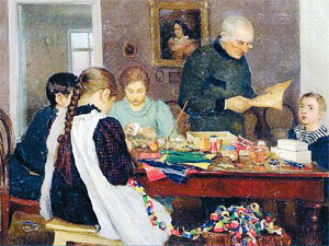 Ёлочные игрушки были дорогим удовольствием, поэтому их часто мастерили своими руками всей семьёй