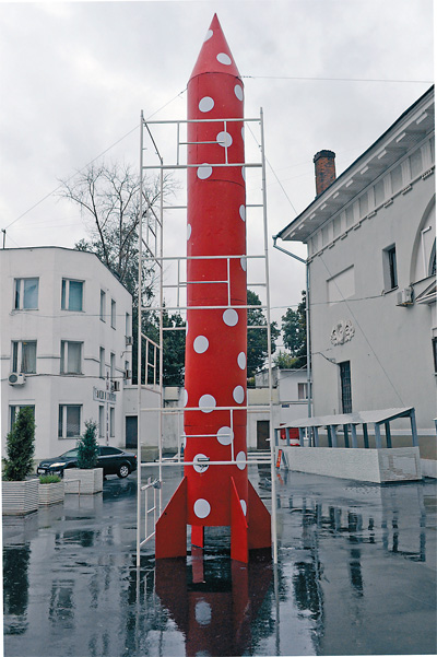 Являясь памятником советскому прошлому, наш мегаполис одновременно служит главной площадкой, где опробуются различные программы по модернизации России. Мифы предшествующей эпохи сталкиваются с новыми экономическими и культурными ценностями, соединяясь или отторгая друг друга. Это и зафиксировано в творениях Сергея Шутова. Например, произведение «МАСКВА» - это готовая к старту ракета, раскрашенная «в белый горох на червонном фоне» (альтернативный российскому триколору вариант). Громкий лозунг художника «Каждому городу - свой Байконур!» звучит вполне в духе советского времени. За последние десятилетия наука и техника шагнули вперёд, но планы учёных XX в. и обещания партийных лидеров так и не осуществились (вспомнить хотя бы главную «обещалку»: «К 1980 году каждой семье - по квартире!» или уверенность властей в том, что к XXI в. мы будем отправлять к соседним планетам корабль за кораблём).