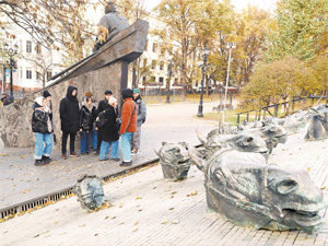 Экскурсия-квест началась у станции метро «Кропоткинская», где студенты МПГУ (все участники олимпиады) разделились на две группы. Ребята отыскали памятник Михаилу Шолохову, посчитали на нём плывущих лошадей, а затем направились к Центральному дому шахматиста им. Ботвинника.