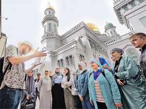 Сочетание традиционной московской и казанской архитектуры в оформлении Московской Соборной мечети подчёркивает глубину русско-татарской дружбы, объяснил экскурсовод.