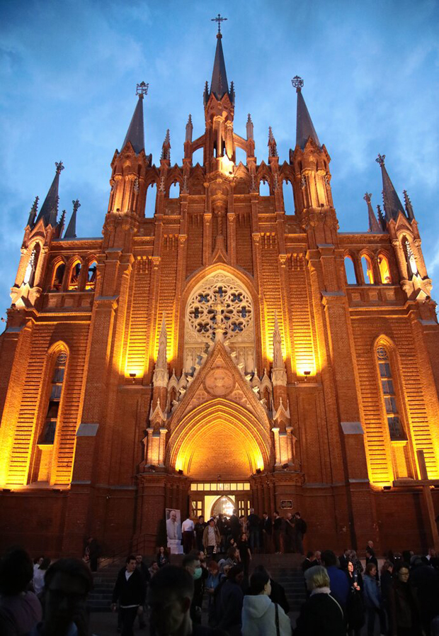 Главный католический храм России. Костёл был построен в 1917 году по проекту архитектора Фомы Богдановича-Дворжецкого на Малой Грузинской улице, д. 27/13. Фасад собора украшен искусными барельефами, повествующими о жизни и страданиях Иисуса Христа. Костёл открыт для посещения всех желающих, вход свободный.