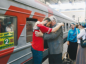 В это время из вагона в сопровождении женщины вышел пожилой чеченец. Он неуверенно ступил на перрон, остановился и стал растерянно оглядываться по сторонам. Вдруг к нему подошёл тот самый парень с бородкой и произнёс: «Вы Муса? А я Зелимхан», - и уткнулся головой в плечо мужчины. Стоящая рядом женщина заплакала, у моей родственницы тоже на глазах заблестели слёзы. «Пойдём, - сказала она, - по дороге я тебе всё расскажу».