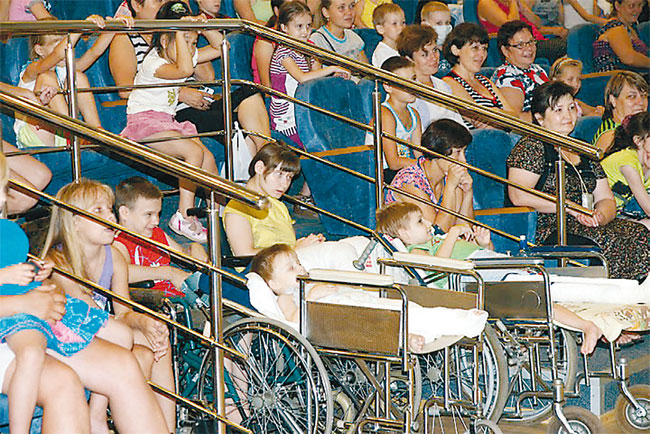 «Быстрее, быстрее, вот-вот начнётся!» - подгоняли родителей ребята, многие из которых пришли на праздник в стерильных повязках на лицах или приехали на инвалидных колясках.