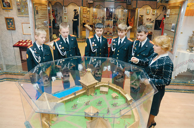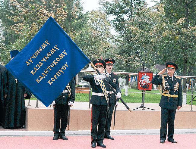 «Секрет в том, что у нас продумано всё до мелочей и каждый день, час и даже минута кадета расписана, - рассказывает полковник Михаил Шпиньков, директор Московского казачьего кадетского корпуса им. М. А. Шолохова. - Ребята учатся здесь 6 дней. После обеда в субботу уезжают домой, а в понедельник утром возвращаются. Подъём у нас в 7 утра. А в 6.45 встают младшие командиры, которых будит офицер-воспитатель. В 5-м классе командирами, кстати, бывает каждый кадет - иногда даже не ожидаешь, у кого откроются командные способности. Зарядка - на свежем воздухе, потом обязателен холодный душ. Поэтому мы не знаем, что такое эпидемия гриппа, наша школа никогда не закрывается на карантин. В день из 350 отсутствуют максимум 15 человек, да и те обычно по семейным обстоятельствам или из-за соревнований. Вот на сегодняшний день нет ни одного простуженного, хотя уже пол-Москвы ходит с насморком и кашлем. После утреннего осмотра - завтрак. Его накрывают сами кадеты, пока дежурные по комнатам наводят порядок. Кстати, шестиразовое питание в меню утверждено специально для кадетских корпусов Институтом питания. И лишь в нашей школе есть собственная штатная столовая, где повара готовят блюда сами, их нам не привозят. И дети получают каждый день такие фрукты, какими дома не каждого кормят. Даже мороженое им полагается, правда, не каждый день».