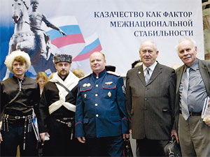 «Главной темой неслучайно стали межнациональные отношения, - считает Николай Ерёмичев, атаман Кубанской казачьей общины Москвы, главный редактор журнала «Казарла». - У казаков есть большой опыт мирного проживания рядом с представителями других культур. Его можно и нужно не только изучать, но и успешно применять сегодня. В 1990 г. был создан Союз казаков России. Его целью было возрождение казачества. Но сегодня очевидно, что возродить его в том виде, в каком оно существовало до 1917 г., невозможно. Ведь казаки тогда были территориально, культурно и экономически автономны. Сегодня - чаще всего общественные организации, куда можно принять любого желающего и откуда можно без труда выйти. Именно поэтому одним из самых актуальных по-прежнему остаётся вопрос самоопределения казаков, их прав и обязанностей».
