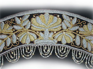 Кроме того, золотными нитками из-за их высокой стоимости обычно не шьют с изнанки, да и как можно переводить такую красоту! Их прикрепляют к поверхности ткани. А здесь нужен точный расчёт. Мастерица должна заранее знать, где и как нить ляжет, где будут загибы», - делится секретами Анна.