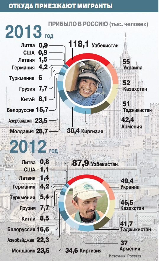 За 2013 год в Москве оформлено: ✔ разрешений на временное проживание - 10 047, ✔ видов на жительство - 9157, ✔ гражданств - 5781. За 2012 год в столице выдано: ✔ разрешений на временное проживание - 10 347, ✔ видов на жительство - 8756, ✔ гражданств - 4203.