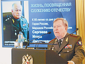 На «круглом столе» в МДН памяти маршала РФ И. Сергеева выступали его коллеги, в том числе экс-командующий Ракетными войсками стратегического назначения Н. Соловцов