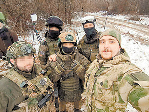 Муж Екатерины священник Георгий Шабалов (справа) вместе с бойцами в зоне СВО.