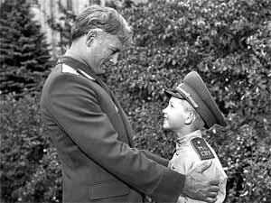 Кадр из фильма «Офицеры». Василий Лановой в роли Ивана Вараввы и суворовец Ваня Трофимов, которого сыграл Андрей Громов.