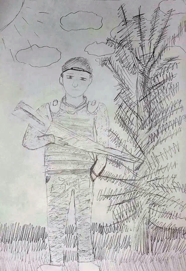 Папу-калмыка, обороняющего Москву от атак БПЛА, а также воздушных нападений противника и носящего позывной «Маэстро», нарисовала 11-летняя Елизавета. Всего в семье 3 сына и дочь, сейчас ждут пятого малыша.