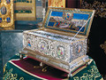 По преданию, драгоценный пояс, который до последних дней жизни носила на талии Пресвятая Богородица, она сплела собственноручно из верблюжьей шерсти