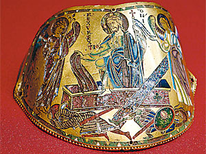На выставке «Святая Русь» представлено около 450 произведений из 25 отечественных музеев, библиотек и архивов. И один редчайший экспонат из Лувра. Это оплечье (армилла) с изображением Воскресения - Сошествия во ад, составлявшее, как предполагают исследователи, часть парадного облачения князя Андрея Боголюбского. Москвичей ждут памятники древнерусской иконописи, книжной миниатюры, монументальной живописи, ювелирного дела, лицевого шитья.