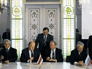 Юридическое оформление распада СССР вынужденно взяли на себя представители тех бывших союзных республик, которые не участвовали в создании некогда единого государства и были включены в его состав позже его образования. Им оставалось только констатировать и документально оформить уже ранее свершившийся факт, поскольку к этому дню от СССР отказались почти все его участники. И даже его первый и единственный президент Михаил Горбачев, накануне объявивший о прекращении своей деятельности на посту Президента СССР «по принципиальным соображениям» и подписавший свой последний указ о сложении с себя полномочий Верховного главнокомандующего Советских Вооружённых Сил и передаче управления стратегическим ядерным оружием Президенту России Борису Ельцину.