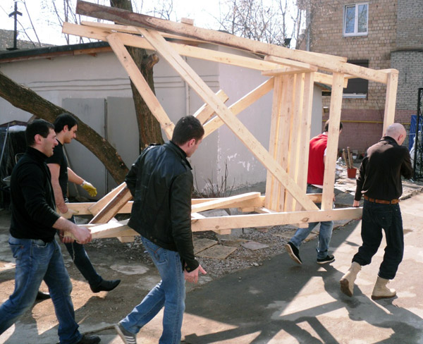Последняя суббота перед Пасхой началась замечательно — щедрое солнце раздавло весеннее тепло, птицы заливались трелями, а бездонное небо обещало не хмуриться. Представители грузинской молодежи Москвы мчались в Храм Великомученика Георгия Победоносца в Грузинах, дабы поучаствовать в приходском субботнике.