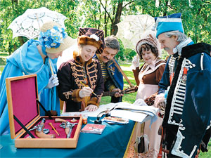 А чеканить монеты своими руками не случалось? Тогда будьте любезны - к Алексею Рогову из клуба «Московские стрельцы». Он и разные виды чеканов покажет, и научит прицельно наносить удар молотком. Каждый мальчишка может подержать на ладони подлинные серебряные талеры из Швейцарии и Италии - именно из таких монет делали похожие на кофейные зёрнышки продолговатые ефимки эпохи Ивана Грозного. А при Петре I подобные монетки, только не разменные, а наградные, чеканились из золота.