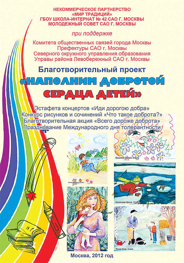 Одной из главных целей акции стала пропаганда юными и молодыми москвичами (через их художественное и литературное творчество) таких понятий, как доброта, дружба, терпимость и любовь к людям всех национальностей без исключения. С большим успехом прошли благотворительные мероприятия под девизом «Иди дорогою добра», а также празднование Международного дня толерантности (акции состоялись в Можайской воспитательной колонии для несовершеннолетних, школе-интернате № 42 Хорошёвского района и социальном приюте «Ховрино»).