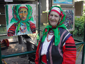 88-летняя фолк-исполнительница, хранительница древних песен Лукерья Андреевна Кошелева со своим портретом