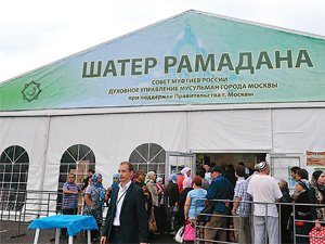 Ежегодно при поддержке правительства Москвы в столице открывается шатёр Рамадана. Этим летом, c 30 июля по 7 августа, туда приходило более 350 человек каждый день.